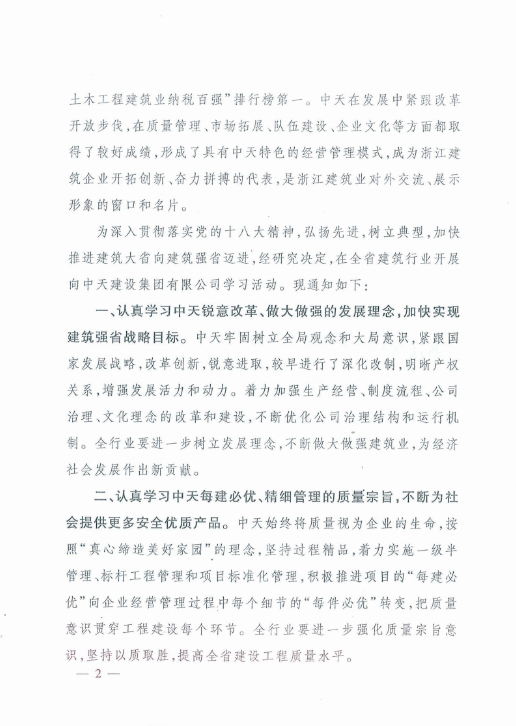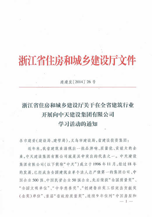 《浙江省住房和城乡建设厅关于在全省建筑行业开展向伟德国际1949建设集团有限公司学习活动的通知》